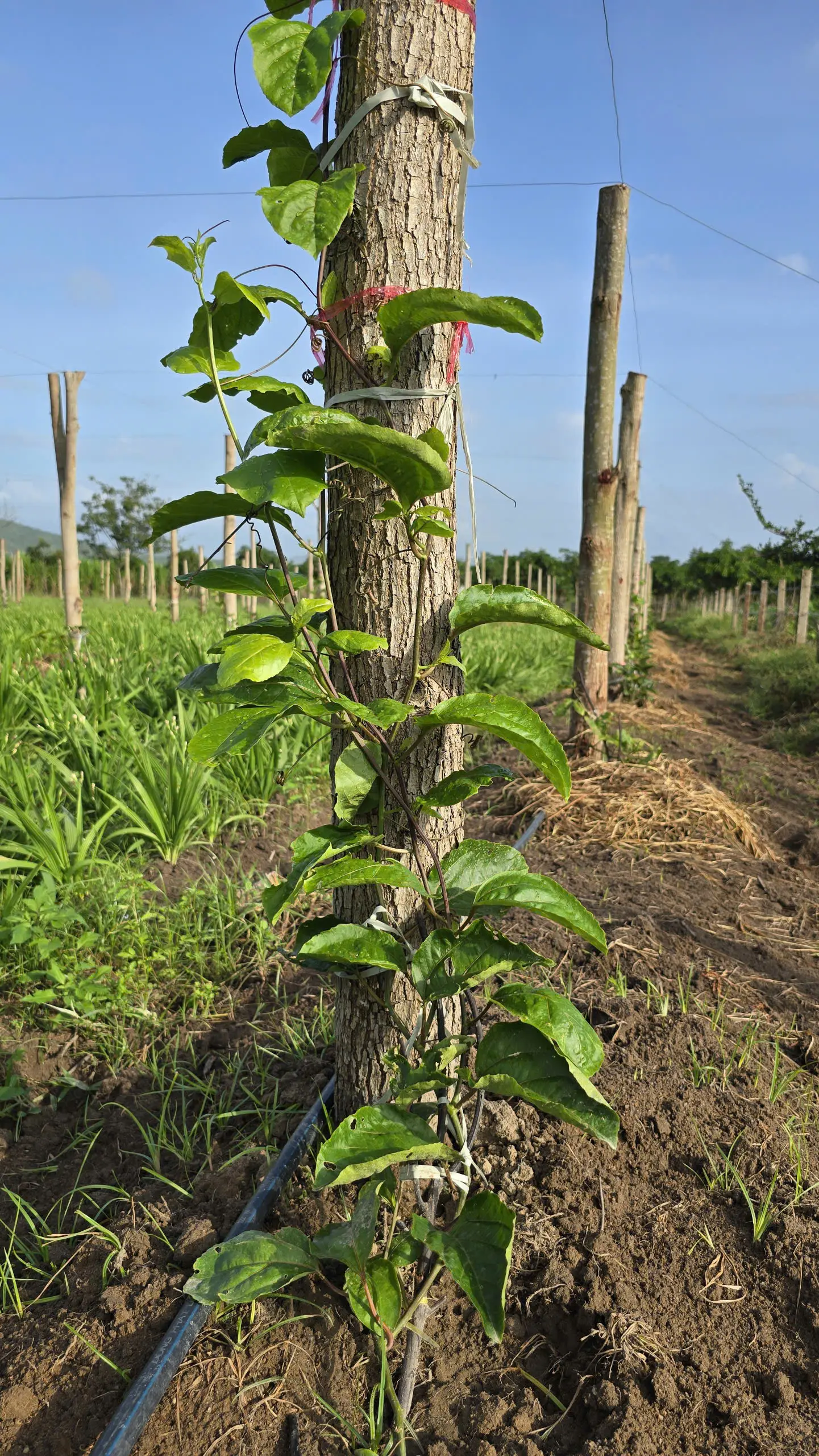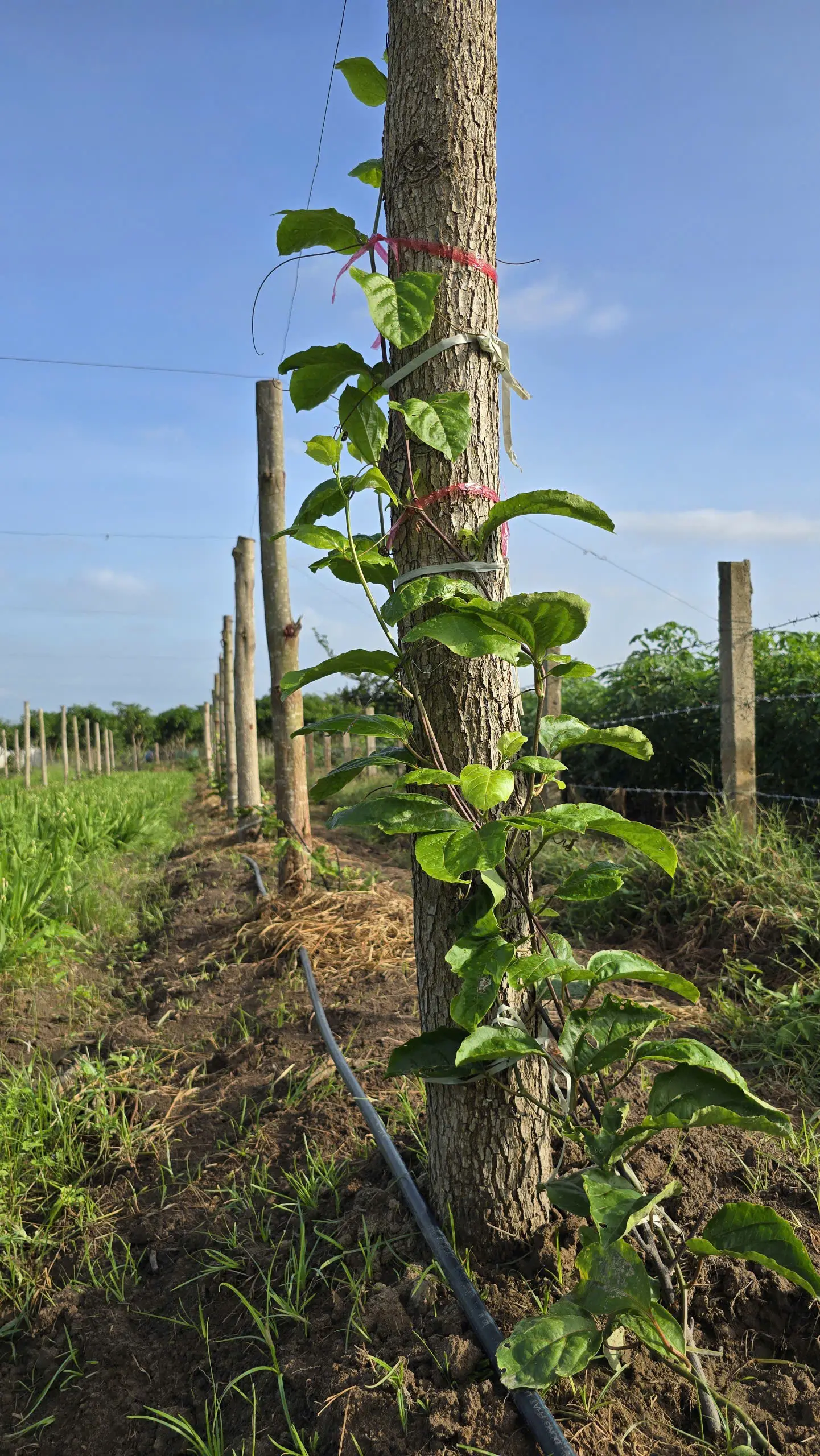 Sau khi lên giàn cho Chanh leo mật ong, kẽm được sử dụng để giăng xung quanh thân cọc và được giăng theo hàng để dây Chanh leo sau khi phát triển được leo cố định.