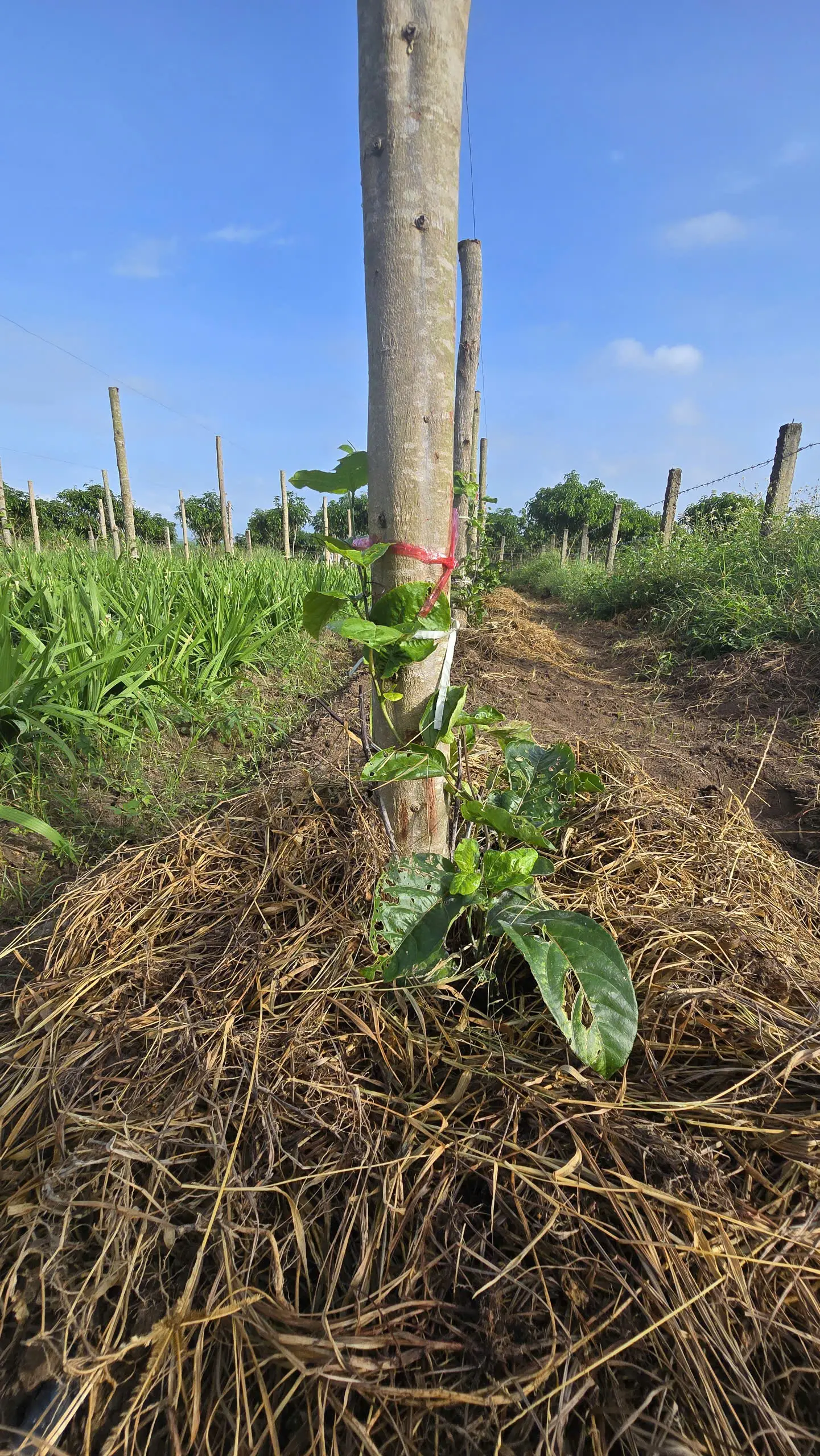 Sau khi nhánh ghép phát triển từ 40cm, bắt đầu lặt bỏ các nhánh dưới gốc cây để các nhánh ghép được phát triển.