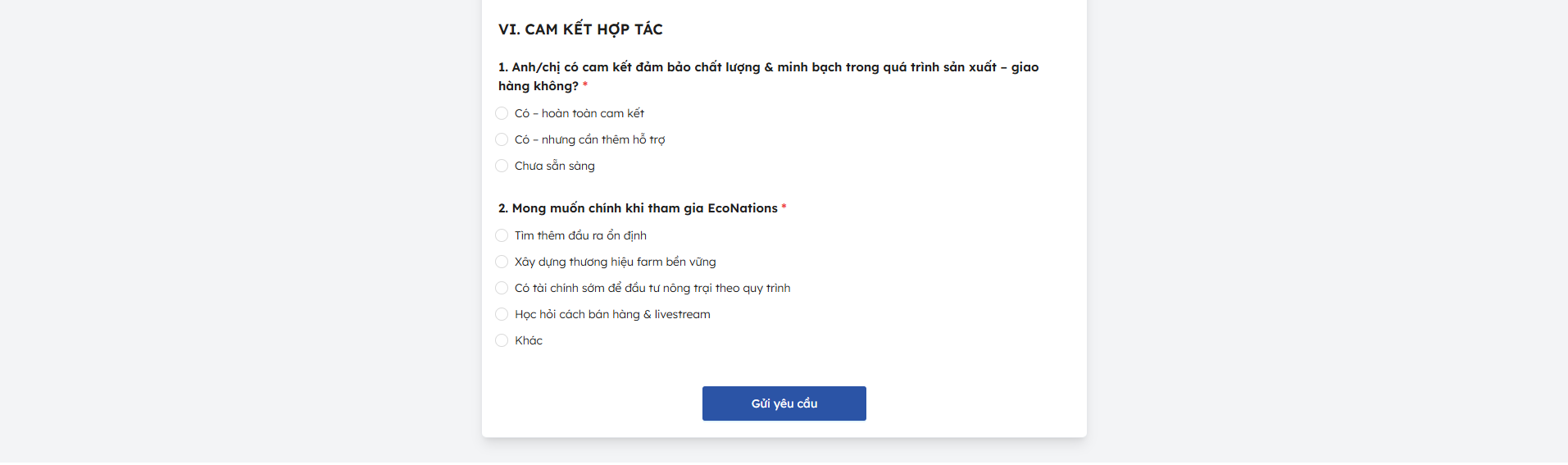 Sau khi gửi yêu cầu, Ban quản lý Sàn EcoNations tiếp nhận thông tin, yêu cầu bổ sung nếu chưa đủ thông tin.