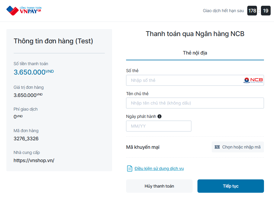Đối với hình thức thanh toán “THẺ ATM- TÀI KHOẢN NGÂN HÀNG NỘI ĐỊA”, người mua chọn ngân hàng, và điền các thông tin theo yêu cầu để hoàn tất thanh toán.