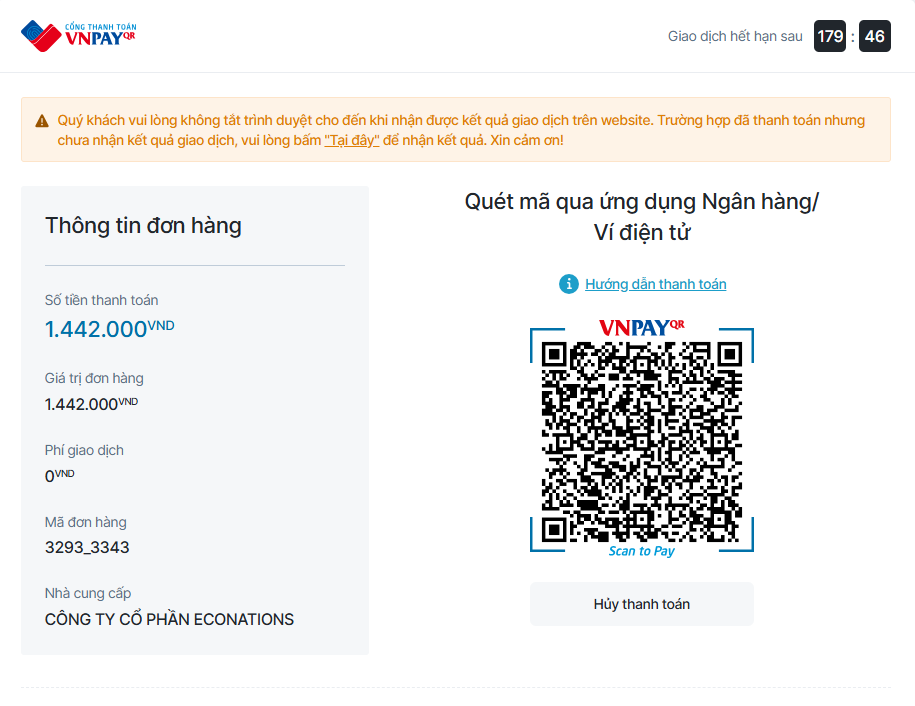 Đối với thanh toán quét mã QR chuyển khoản, người mua sẽ quét mã QR thanh toán theo thông tin đơn hàng của mình